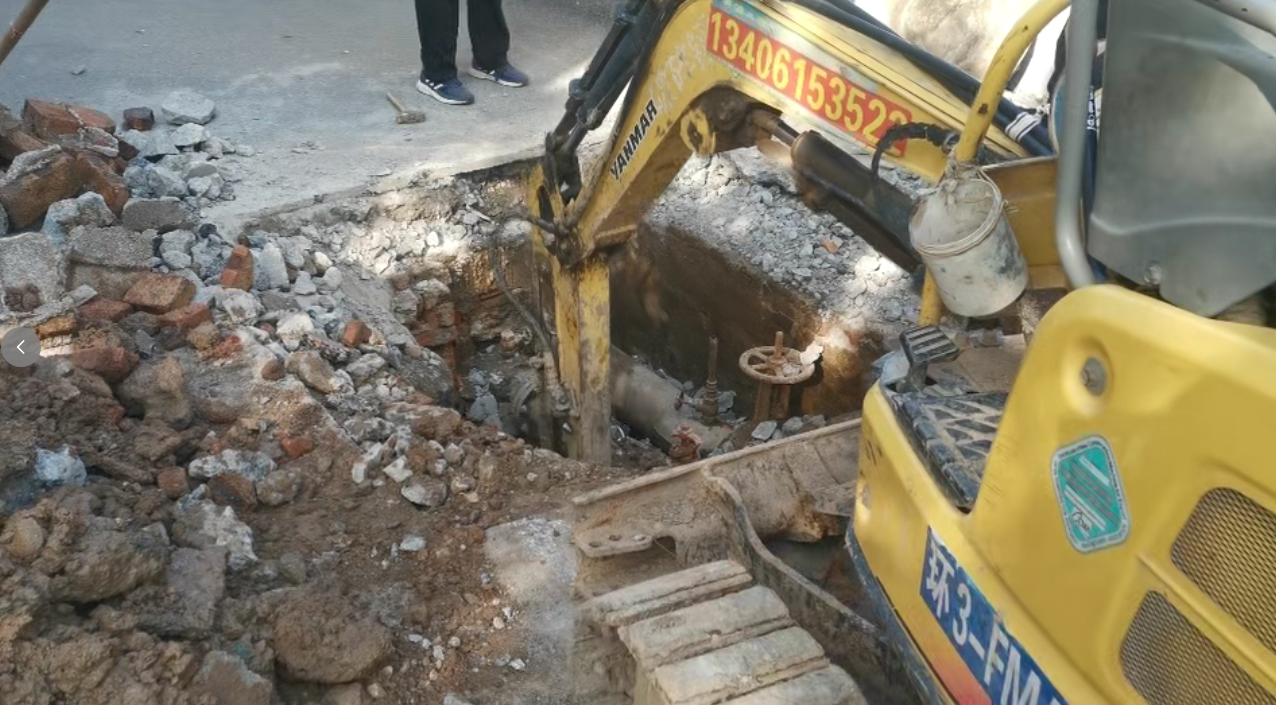 在阀门损坏处,帮办记者看到有施工队在作业,挖掘机将地面挖开,漏出了地下管道阀门。据了解,该施工队是11日早上由物业安排开始作业的。
