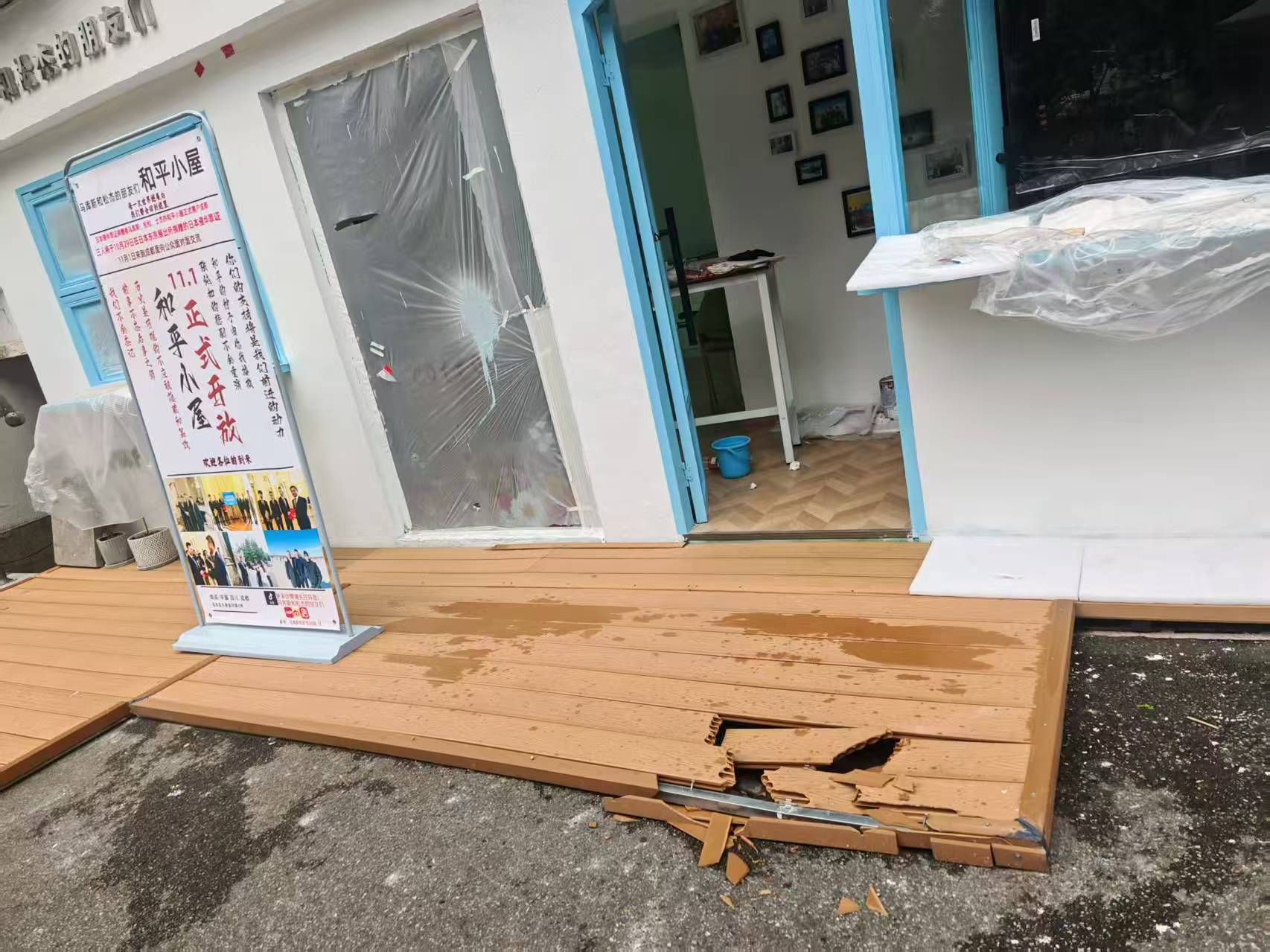 11月12日,曾捐赠日军侵华历史照片的法国友人马库斯在社交平台发布视频,称其团队在成都开设的“和平小屋”,遭一自称“自律委员会”的组织以“占用公共面积”为由索取费用。在拒绝缴费后,小屋门口铺设的一段地板被该组织成员开车压坏。事件引发网友关注。(齐鲁晚报·齐鲁壹点爆料电话:0531-85193656;邮箱:405617016@qq.com)