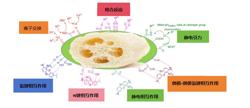 △丝瓜络对染料和重金属的吸附机理
