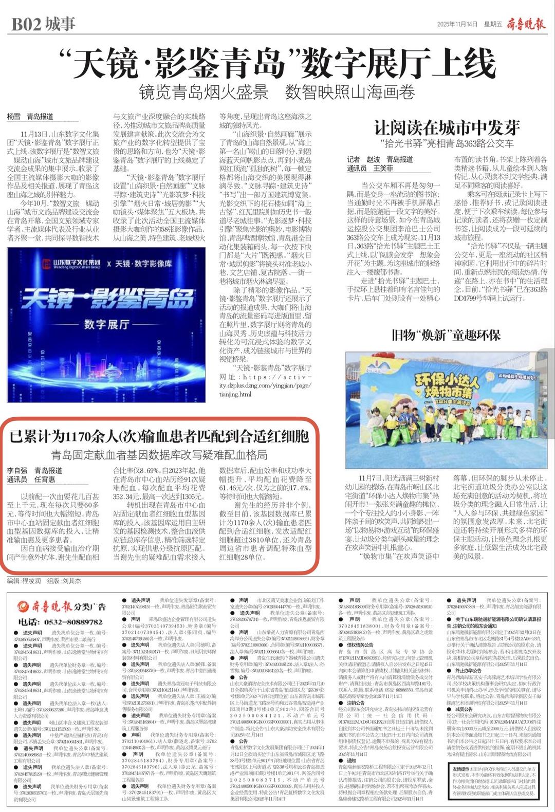 谢先生的经历并非个例,截至目前,该基因数据库已累计为1170余人(次)输血患者匹配到合适红细胞,发放适配红细胞超过3810单位,还为青岛周边省市患者调配特殊血型红细胞28单位。