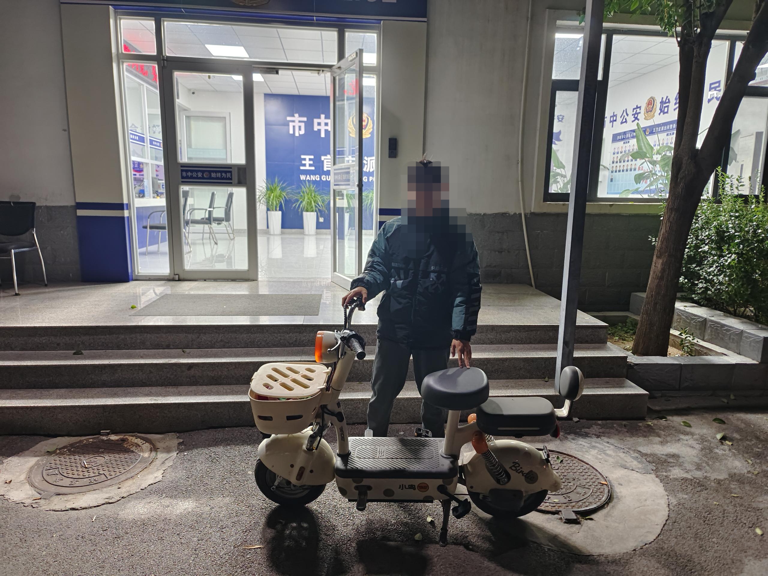 功夫不负有心人,在精准掌握嫌疑人出行规律后,民警果断出击,在王官庄西居附近成功将盗窃嫌疑人抓获归案,并当场追回被盗电动车。