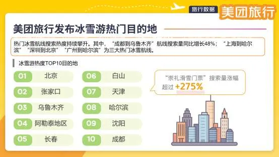 从预订量看,三大热门“冰雪航线”中,前往哈尔滨的“冰雪线”占两席。