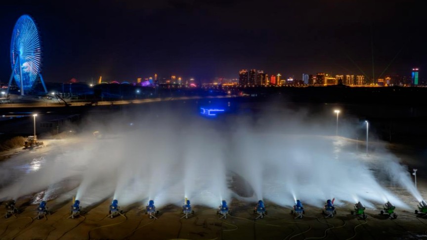 最新消息,11月17日晚,哈尔滨冰雪大世界已经开始造雪了!