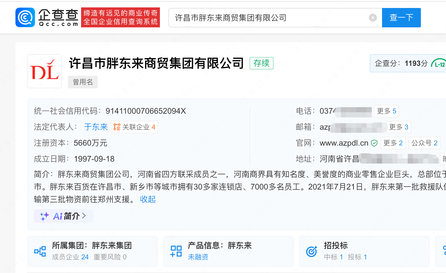 企查查APP显示,近日,许昌市胖东来商贸集团有限公司发生工商变更,多名人员卸任董事职务,创始人于东来增任董事,于娟由监事转为董事,王德卫卸任监事职务,由菅凯歌、冯延军接任等。企查查信息显示,该公司成立于1997年9月,注册资本5660万元,于东来担任法定代表人、董事长、总经理,并持股69%左右。当前胖东来集团成员企业超20家,许昌市胖东来商贸集团有限公司为主公司。 (企查查)