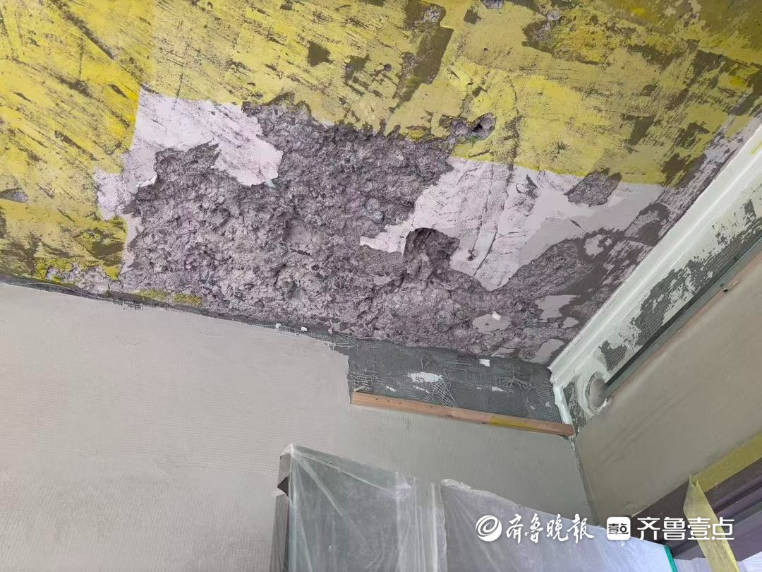 据了解,纪女士于2022年购入该房产,今年8月房屋精装交付。因对原有装修不满意,她在10月10日请装修公司铲除墙面腻子准备重新装修时,意外揭露主卧屋顶的水泥隐患。