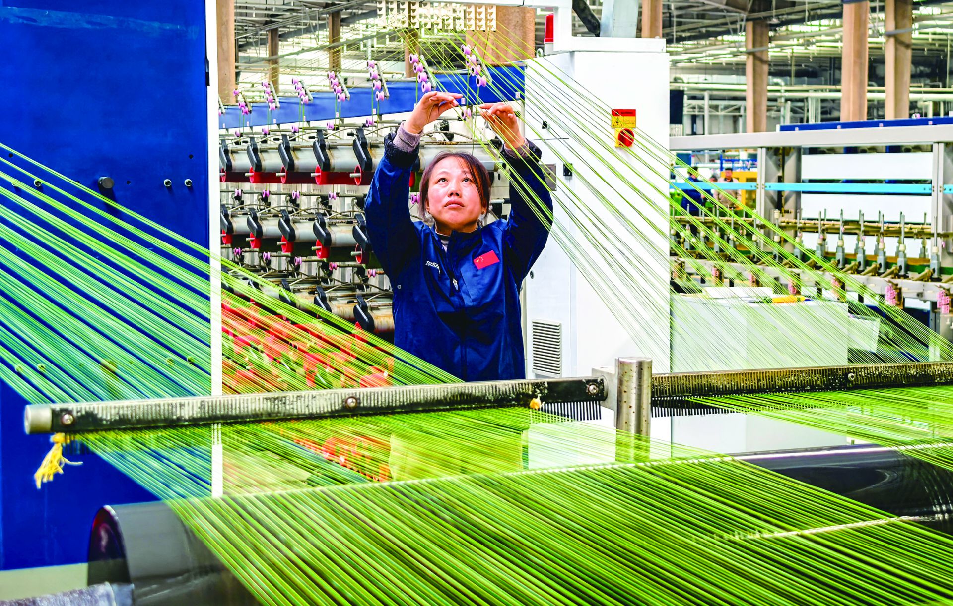 在泰山体育的智能化生产车间,自动化生产线高效运转。人造草坪智能化生产项目采用国际先进生产线,全自动工业智能机器人提花设备可根据客户指定花色和LOGO进行多样化生产。通过自动上料、自动计量、自动报警系统,整个生产过程实现了95%以上的自动化率。