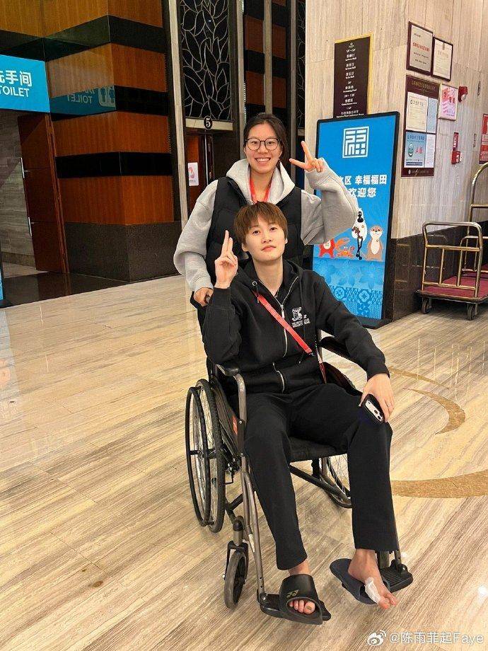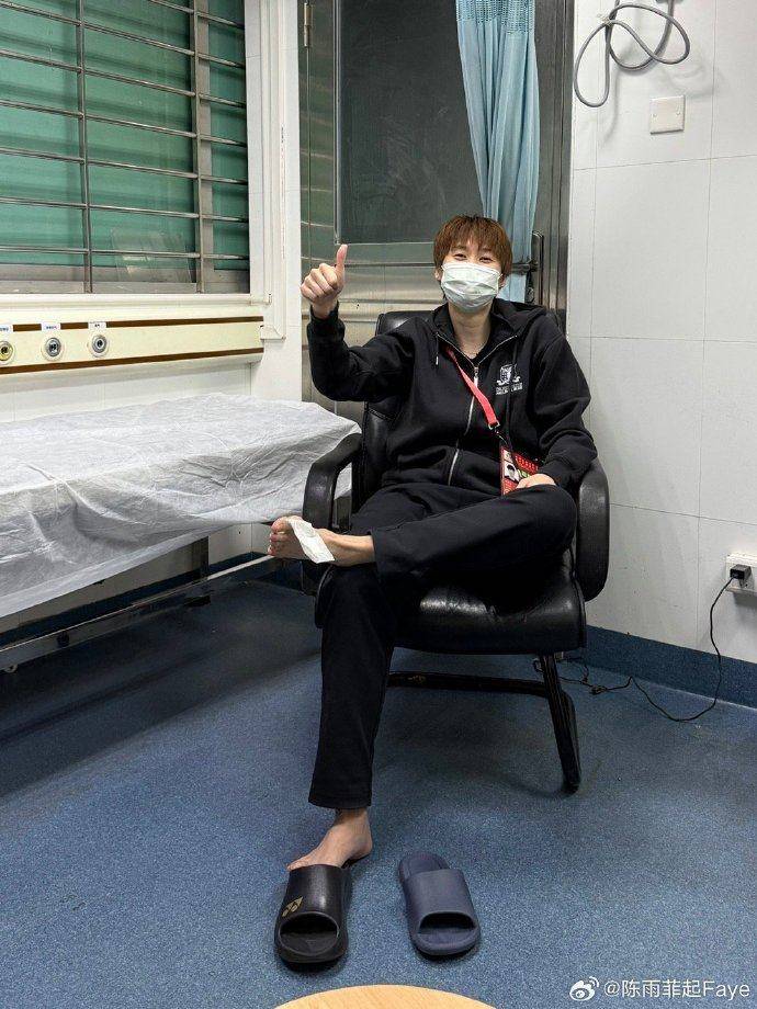 11月20日,全运会羽毛球女单决赛,奥运冠军、杭州姑娘陈雨菲1比2不敌对手,获得一枚银牌。当晚,陈雨菲在个人微博账号晒出脚伤照及坐轮椅照。