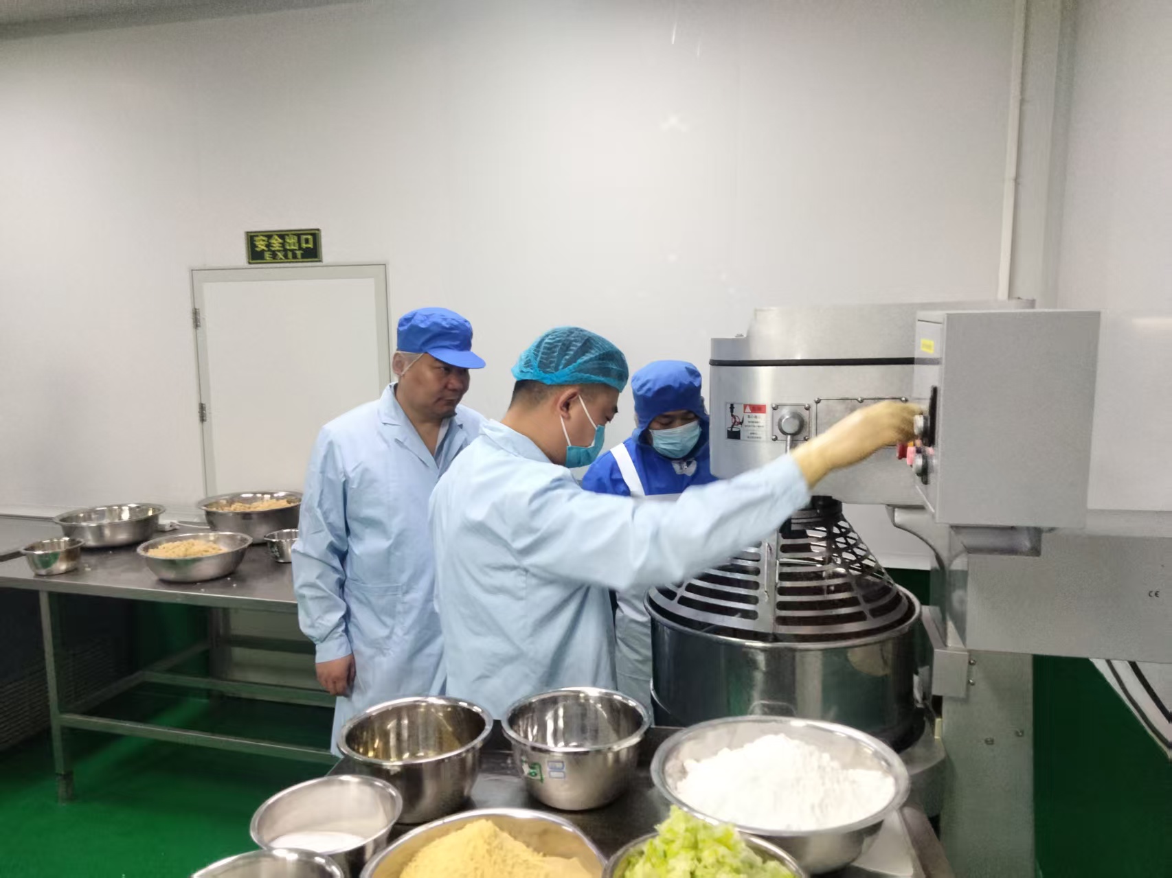 (许吉祥在生产车间查看食品生产情况。)