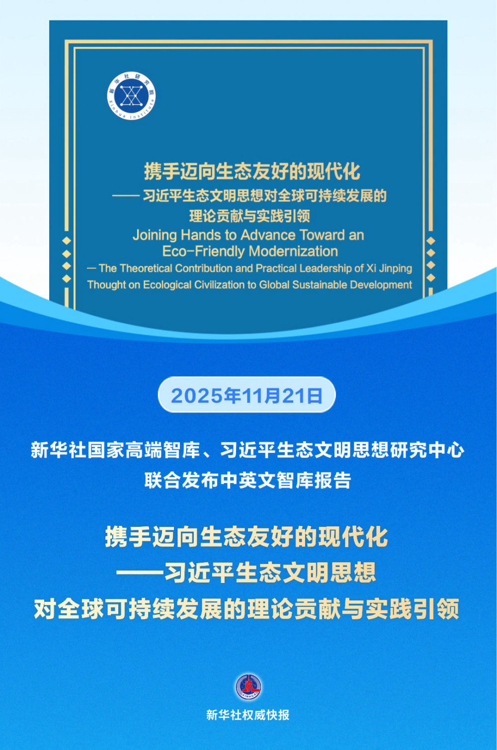 11月21日,在成都举行的2025全球熊猫伙伴大会上,由新华社国家高端智库和习近平生态文明思想研究中心共同撰写的智库报告《携手迈向生态友好的现代化——习近平生态文明思想对全球可持续发展的理论贡献与实践引领》面向全球发布。当日,同主题智库报告也在北京举行的全球南方现代化论坛上进行发布。