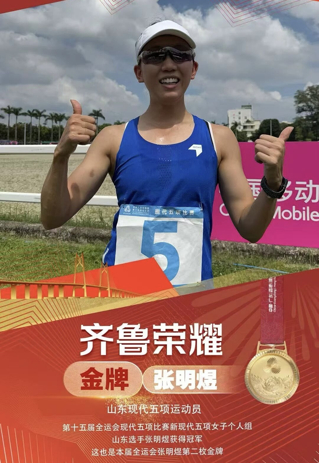 赛场上,枣庄健儿奋勇争先、捷报频传。张明煜在现代五项赛场勇夺2枚金牌,宗照山、王璟祺分别摘得男、女八人单桨项目桂冠,张驰和张玺瑞携队友拿下铁人三项混合接力冠军,姜蕴晏在女子20公里竞走中刷新个人最佳斩获银牌,徐蕾跆拳道赛场摘铜,杨斌连续五届征战全运会斩获古典式摔跤铜牌,孙梦雅则在皮划艇静水女子500米双人划艇项目中收获铜牌。