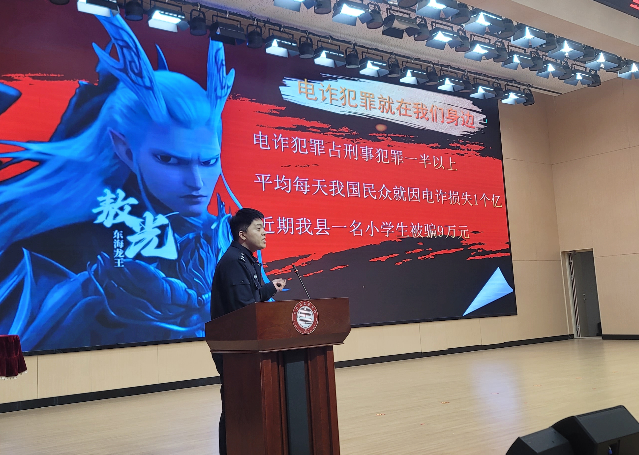 活动在棠邑学校报告厅正式拉开帷幕,首先进行的是安全知识宣讲环节。反诈民警结合真实案例,详细讲解了“网络兼职刷单”“冒充老师收费”等常见诈骗类型作案手法和防范措施。民警通过互问互答、举手抢答以及随机点名等互动形式,充分调动了学生们的积极性,现场气氛热烈,同学们踊跃参与,纷纷举手回答问题,让安全知识在轻松愉快的氛围中深入人心。