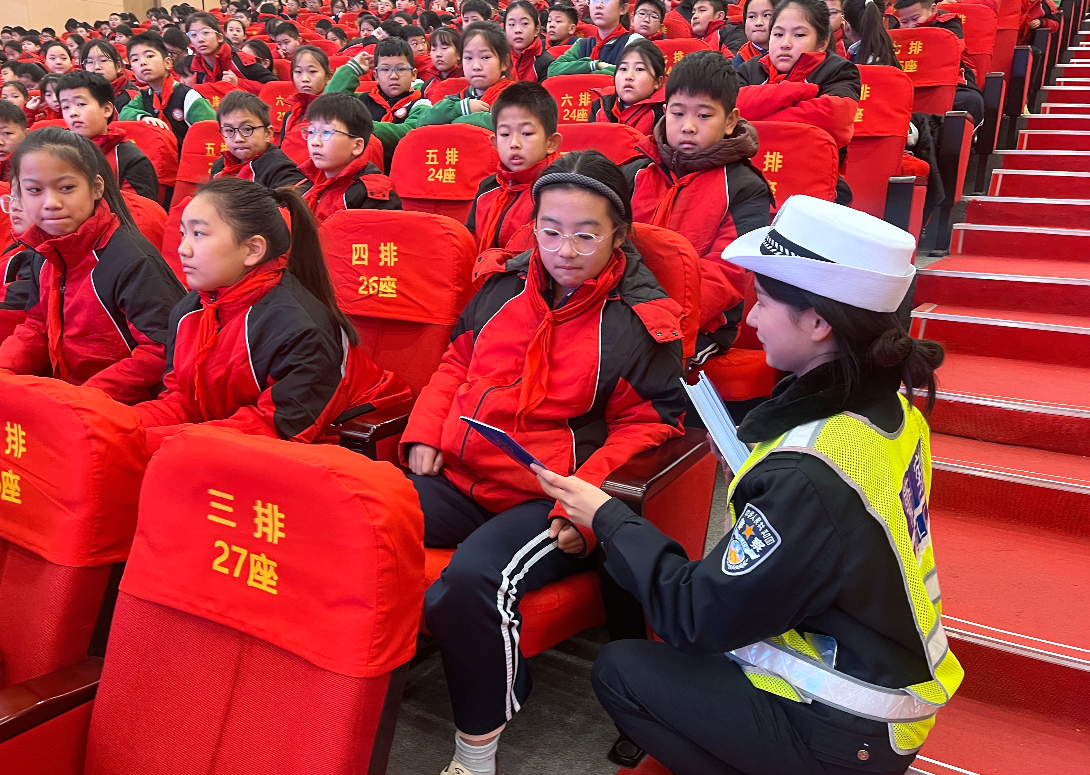 随后,市公安局交管民警走上讲台,以图文并茂的形式讲解《行论》读本,并通过播放交通安全教育视频、展示交通事故案例、互问互答等方式,深入浅出地讲解如何安全过马路、正确乘坐交通工具、遵守交通信号灯等安全知识,进一步提升了学生的安全意识。