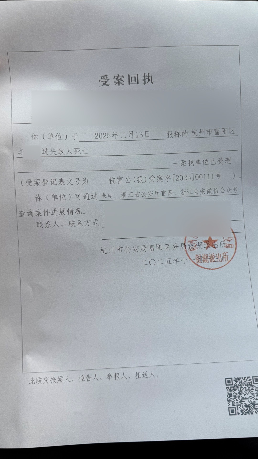 记者联系富阳区公安局,工作人员却回复,派出所已经受理了,在处理过程中。记者再次联系银湖派出所,另外一名接线人员称,派出所一直在和家属保持沟通,已经在调查处理了。