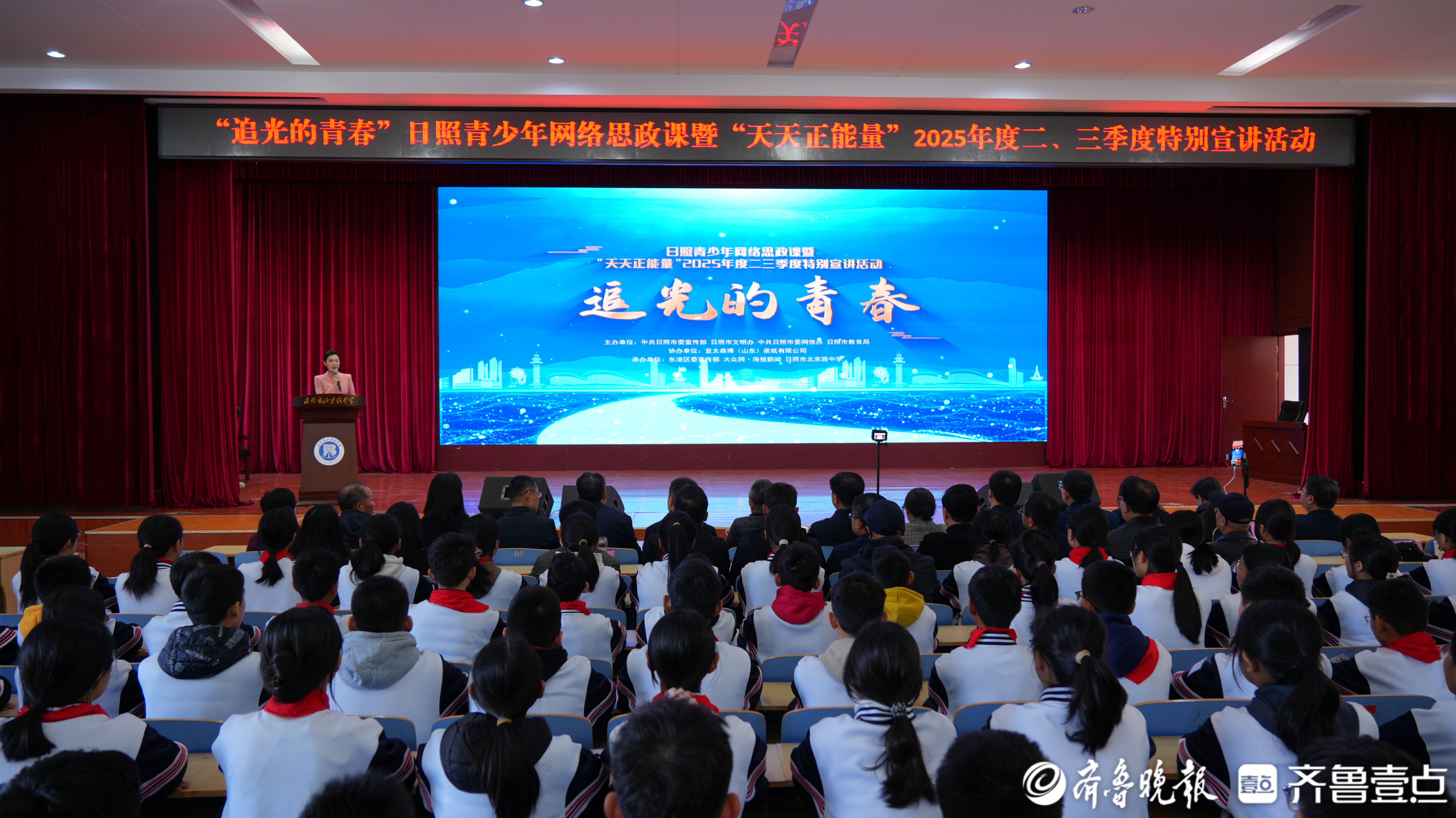 11月21日上午,日照市北京路中学报告厅内掌声阵阵、暖意涌动,“追光的青春”日照青少年网络思政课暨“天天正能量”2025年度二、三季度特别宣讲活动在此举办。