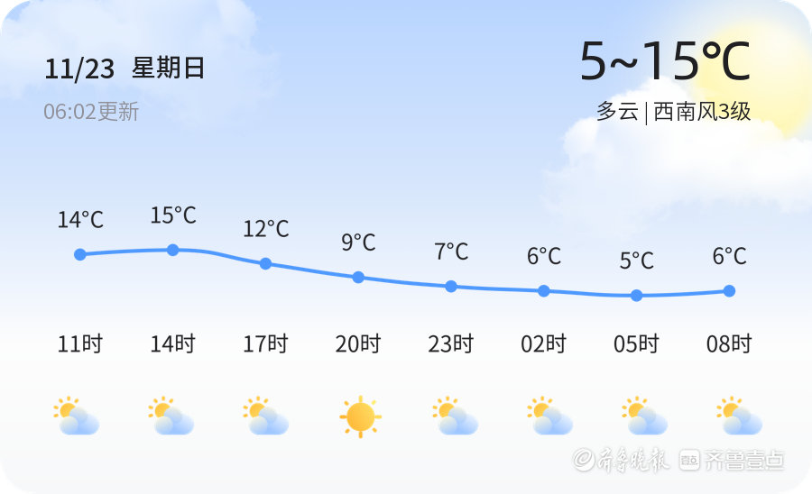 今日是2025年11月23日,农历十月初四,烟台市天气多云,气温介于5℃至15℃之间,西南风3级。目前空气质量指数为133,属于轻度污染,建议市民外出时佩戴口罩,尤其是敏感人群,以减少PM2.5对健康的影响。未来三天,烟台市天气以多云为主,25日可能出现小雨天气。气温波动不大,最高气温16℃,最低气温4℃。市民需注意及时增减衣物,尤其是25日的小雨天气,可能会导致道路湿滑,驾车出行请注意安全。温馨提示