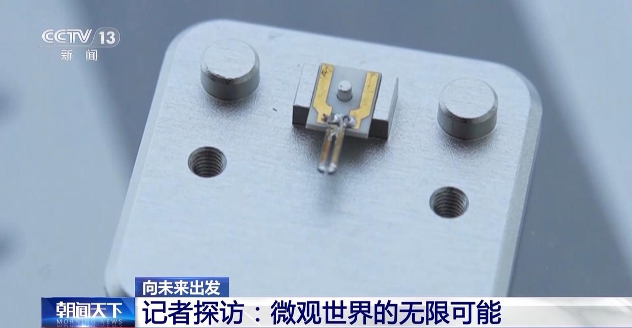 总台央视记者 张丛婧:我手里拿的是一个量子精密传感器,它并不是我们肉眼所看到的元器件,而是在针尖上我们看不到的地方,它只有0.5纳米大小,相当于头发丝直径的十万分之一。