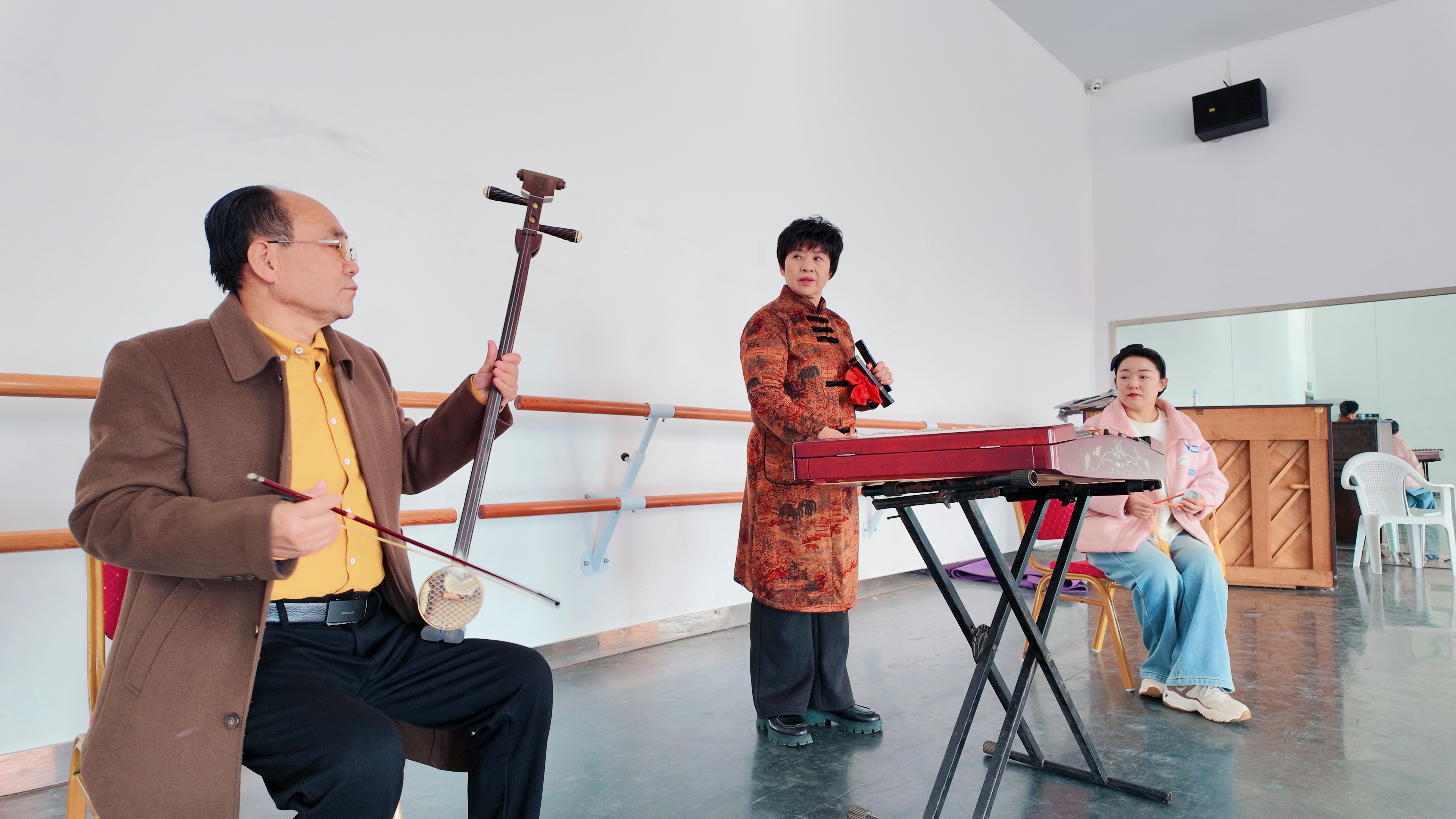 “哎——嘚儿啷当哩个啷!这过年它头一桩,全家团圆包饺忙!……”11月24日,寒意渐浓的济宁艺术剧院排练厅内,却涌动着热腾腾的热闹气息。国家级非物质文化遗产山东琴书代表性传承人刘士福,正和相伴多年的妻子高桂兰并肩而立,专注排练着专为年底春晚打磨的新节目《山东琴书-老两口遇AI》。扬琴的清脆声叮咚作响,坠琴的醇厚音婉转悠扬,两种乐器交织出地道的鲁西南韵味。刘士福嗓音洪亮、吐字铿锵,妻子高桂兰从容应答、默契配合,夫妻俩一捧一哏的生动对话,满是生活化的烟火气,让整个排练厅都浸润在这份接地气的欢声笑语里。