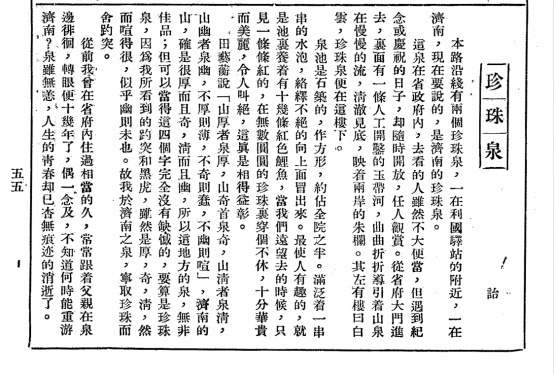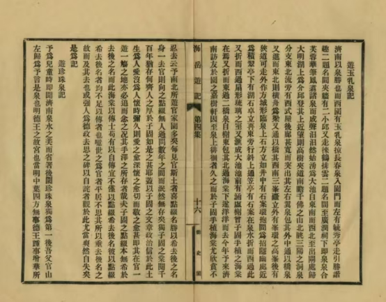 《历代游记中的济南泉水》一书则分为上、下两编,其中上编共辑收了由明清至现当代 40 位作者写济南名泉的游记 45 篇。这些记游性文字兼具文学性、生动性和可读性,细细读之,可以感受到同一处济南名泉、同一泓济南泉水在不同的时间、不同的季节、不同的游客眼中所呈现出的千差万别的姿态和神韵,体检到某种审美愉悦感。
