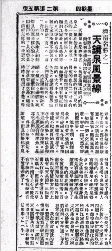 《历代游记中的济南泉水》一书上编中收录的写济南泉水的游记中大约有 20 篇也是首次被整理并全文披露的,如吴伯与、陈士杰的两篇《趵突泉记》,西夷的《游趵突泉》,林宰平《黑虎泉纪游》,国樵的《记历城金线泉》,林丁的《金线泉》,牛的《济南名胜之一:天镜泉风景线》,以及钱海岳的《游趵突泉记》《游黑虎泉记》《游珍珠泉记》《游金线泉记》《游玉乳泉记》等,此前都不见载于当代出版印行的济南文史书籍(包括刘书龙自己编著出版的《民国济南风情》《济南历代游记选萃》和《古城名泉系列丛书:名泉文萃》等书);至于下编中收录的内容,更有 40 多种是首次被整理并被收录在当代出版的图书中的。