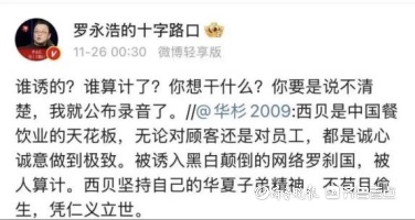 这场纷争来源于华与华创始人华杉昨日在微博重提西贝事件,认为“西贝被算计”,他发文称:西贝是中国餐饮业的天花板,无论对顾客还是对员工,都是诚心诚意做到极致。被诱入黑白颠倒的网络罗刹国,被人算计。
