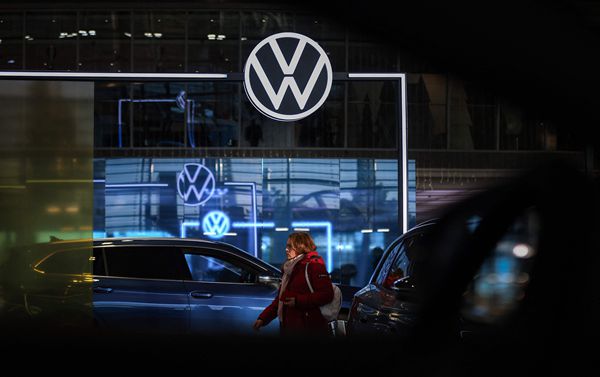 11月21日,在德国沃尔夫斯堡,一名女子经过大众汽车的客户服务中心。新华社