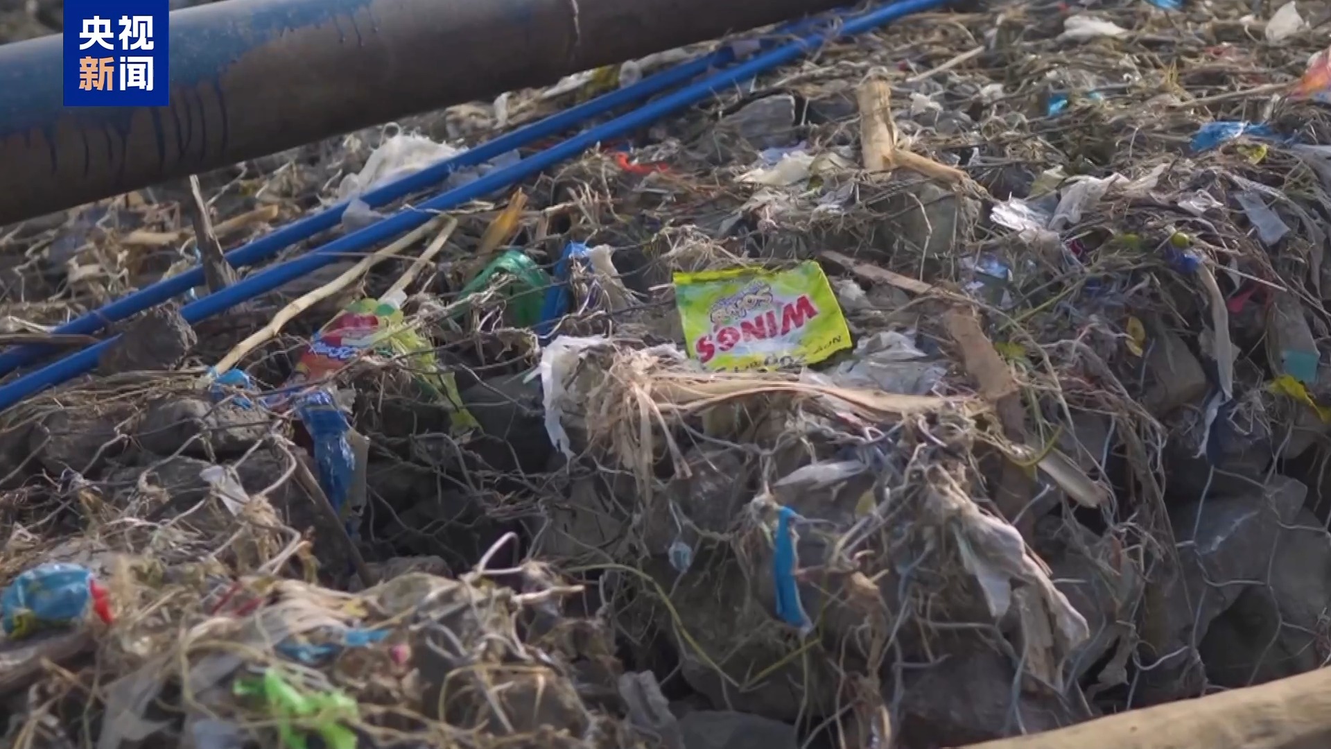 菲律宾宿务省塔利赛市的防洪工程只是用金属丝捆绑起一堆石头。