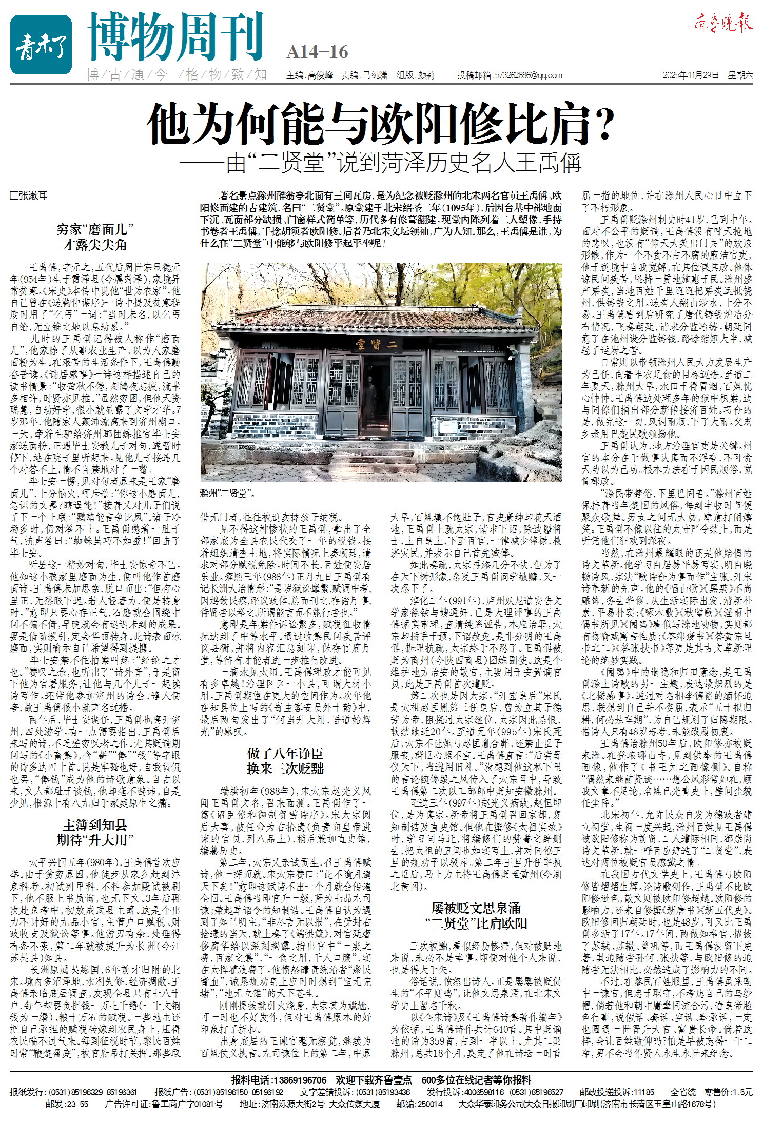 他为何能与欧阳修比肩?由“二贤堂”说到菏泽历史名人王禹偁