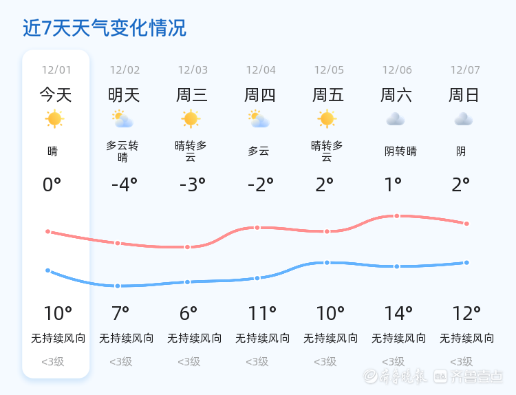 未来三天,济宁市天气将呈现先晴后多云的趋势。气温将在-4℃至10℃之间波动,市民需注意及时添衣保暖。特别是明天和后天,气温较低,建议市民提前做好御寒措施。