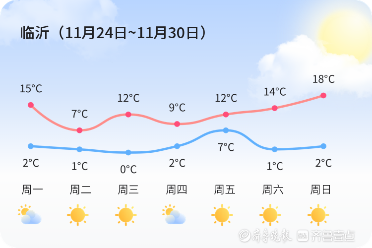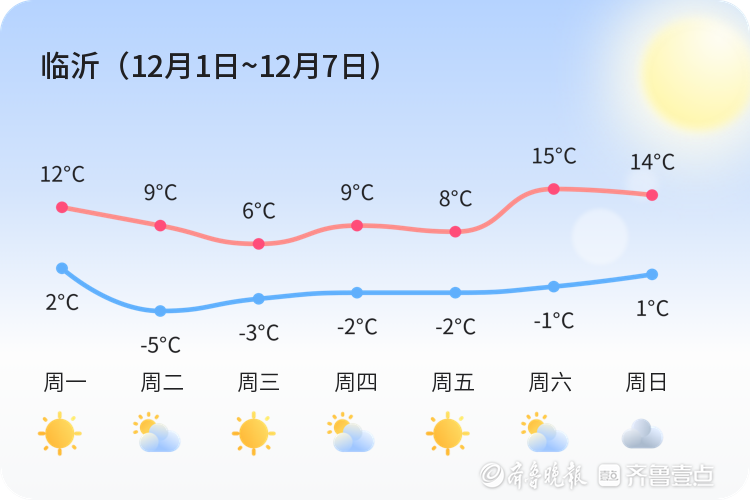 上周(11月24日~11月30日)我市晴、多云天比较多。 全市周平均最高温12℃,平均最低温2℃,平均气温7℃,周最高气温18℃,出现在周日,周最低温0℃,出现在周三。 具体气温变化情况如下图。 本周总体以晴、多云为主基调,可能还会有阴等天气。具体天气情况请关注每日天气情况预告。 本周气温变化情况: 最低气温-5~2℃,最高气温6~15℃。 需要关注及时最新预报。 具体气温变化情况如下图。