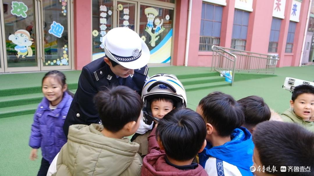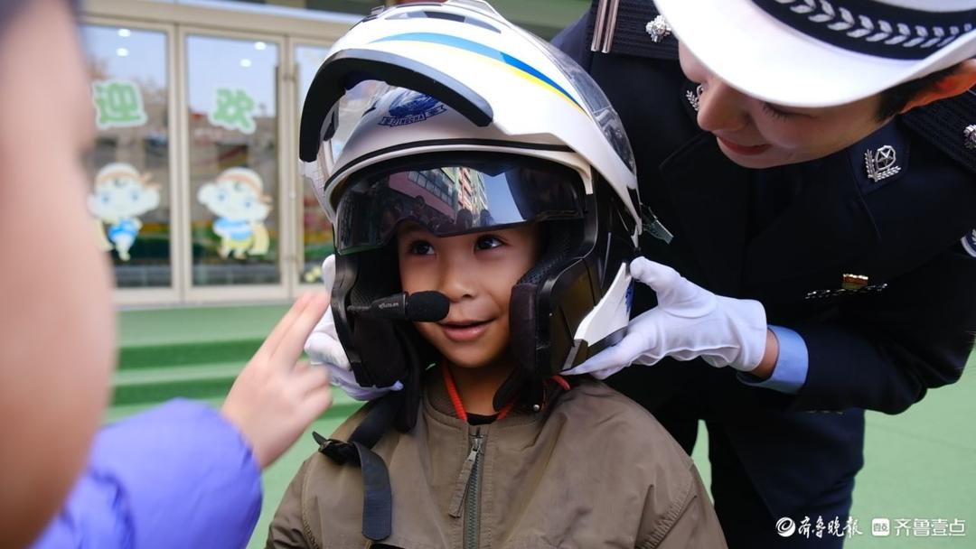 市中区文化路丝雨幼儿园大一班的徐睿泽小朋友兴奋地告诉记者:“我学到了红灯停,绿灯行,看见黄灯亮了等一等,不能在马路上踢足球。”铁骑警察向小朋友们介绍了警用摩托的特点以及自己在工作中用到的各种装备,告诉小朋友们一定要在日常的生活中遵守交通规则。在最后的互动环节,交警带领小朋友一起学起了交通指挥手势,并邀请了部分小朋友一起模拟汽车道路行驶和行人过马路,用生动、有趣的体验课把交通安全意识的种子扎根在校园里。