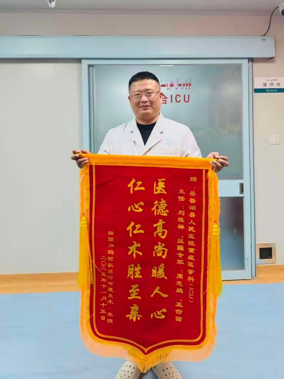 医术是根,仁心是魂。周志鹏医生深知,对于重症患者及其家庭而言,除了专业的治疗,心理的慰藉与支持同样重要。他始终秉持“以患者为中心”的理念,在救治过程中,不仅关注患者的生理指标,也时刻体察他们的心理需求和家属的焦虑。他耐心地向家属解释病情,沟通治疗方案,用温和的话语缓解他们的紧张与不安。他严谨的工作态度、高超的医疗技术以及充满人文关怀的沟通,患者和家属都看在眼里,暖在心头。痊愈出院的患者和家属对他充满了感激之情,真挚的“谢谢”和满意的笑容,是对他辛勤付出最好的回报。这种来自患-方的认可与好评,是对一位医者最高的褒奖,也充分证明了周志鹏医生的援疆工作真正做到了“接地气、有实效、暖人心”。
