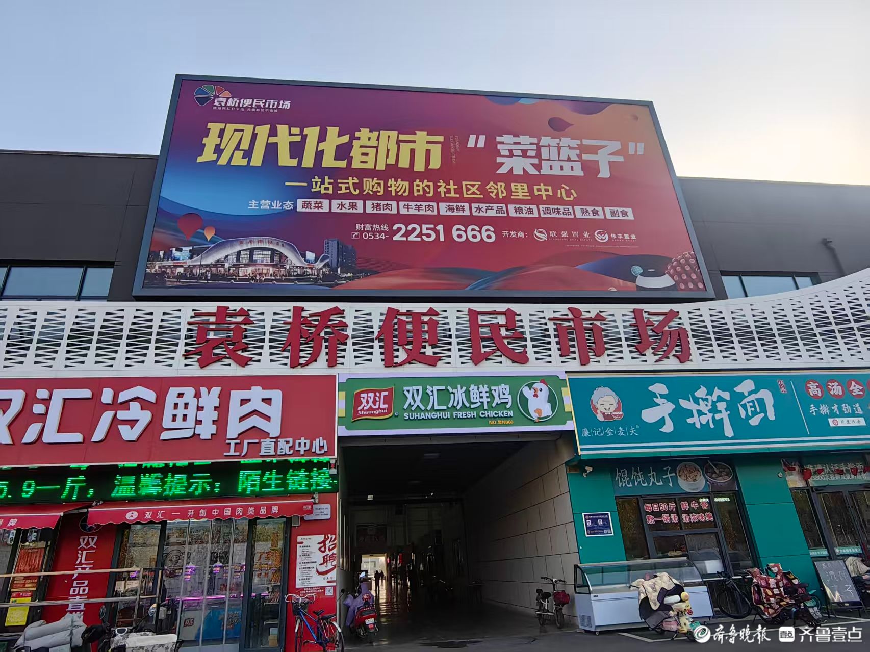 据悉,袁桥便民市场今年9月底开业,作为德州市重点民生项目和精品工程,旨在打造一站式购物的社区邻里中心,市场按照星级规范化标准建造,东西南北共设4个出入口,通行购物更方便,并配备约300个地上停车位,沿街商铺经营种类涵盖生活超市、连锁火锅店、特色美食、零售、服饰、自助洗车等多种业态,内部商铺和摊位销售肉类、水产、熟食、副食、粮油等多种品类,目前已经入驻50余家商户,其余商家正处于装修或筹备阶段。
