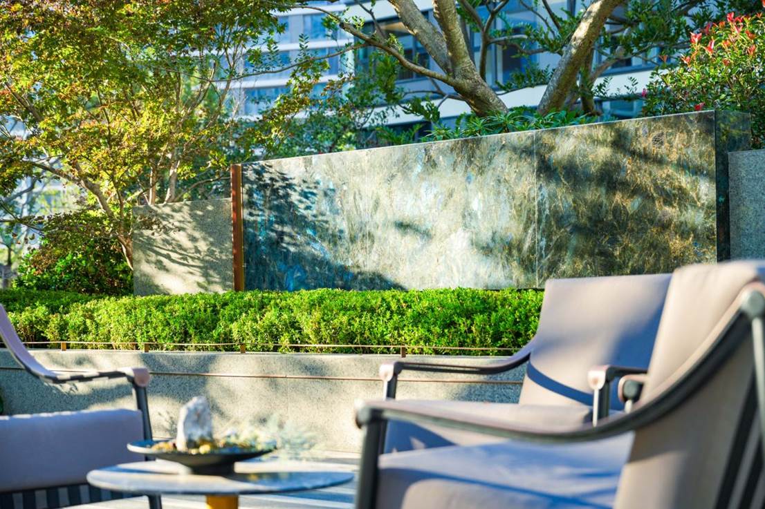 外立面以“白鹭栖樾”为灵感,铝板与LOW-E玻璃构成全面屏视觉,兼顾美学与功能。地库中,爱马仕灰石材、适配跑车的缓坡车道、星空顶车马厅等细节,进一步诠释了“归家即度假”的品质追求。