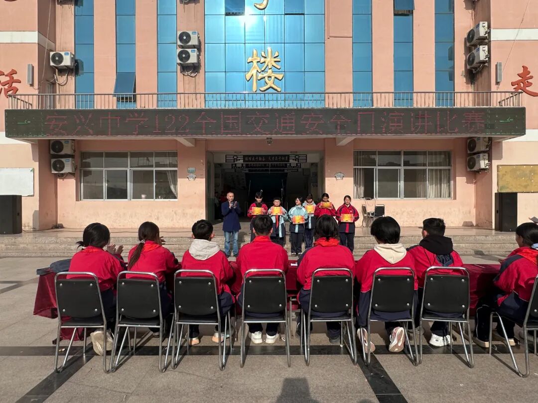 2025年12月2日是第14个全国交通安全日,安兴中学隆重举行“文明交通,礼行天下”主题演讲比赛,学生做主持,学生当评委,13名选手参赛。