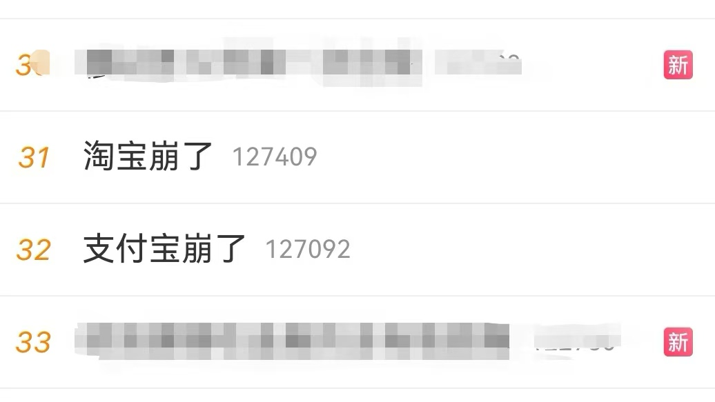 “淘宝崩了”、“支付宝崩了”、“闲鱼崩了” 昨晚集体登上热搜