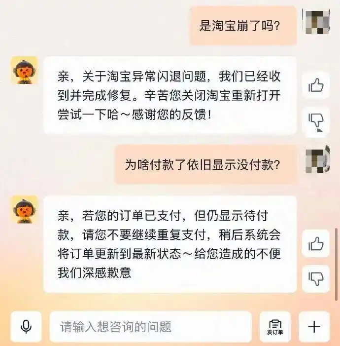 故障集中在当晚10:30至12:00左右,部分用户还遭遇账号强制退出、余额显示错误、确认收货失败等问题。