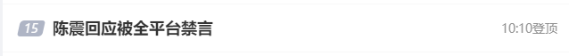 抖音、快手、小红书平台显示,该用户因违反相关法律法规和政策,已被禁言。B站则显示其账号已被封禁。值得注意的是,12月5日凌晨核查时,陈震的微博主账号曾短暂未显示禁言状态,但后续亦更新为"因违反相关法律法规,处于禁言状态",至此其主要内容发布渠道均已停摆。