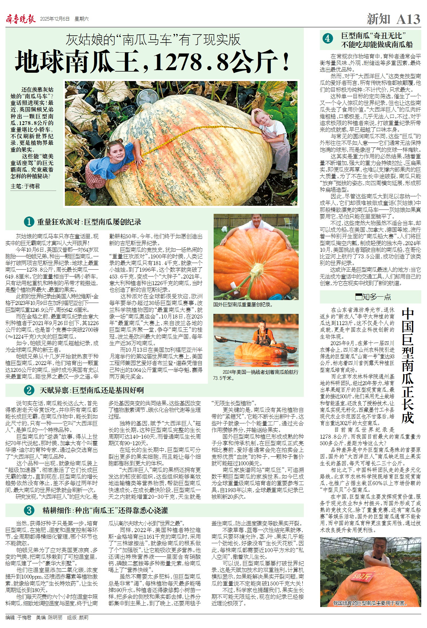 新知|1278.8 公斤“南瓜王”横空出世,它是怎么长成的