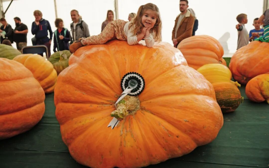 在中国,巨型南瓜主要发挥观赏价值,服务于观光农业和乡村振兴。而国外形成了成熟的竞技文化,除了重量竞赛,还有“南瓜船赛”等娱乐活动。国外的巨型南瓜通常不能食用,而中国的南瓜育种更注重实用性,通过技术改良提升食用便利性。