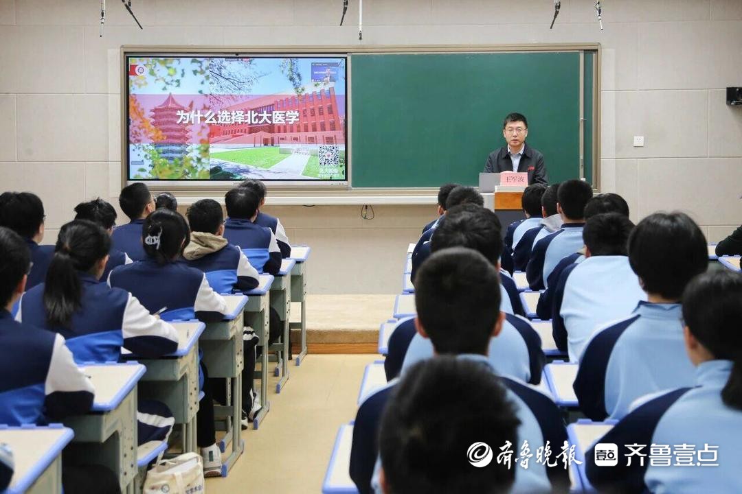 北京大学医学部山东招生负责人王军波教授带来报告《为什么选择北大医学》。详细介绍了北京大学医学部的历史文化、专业设置、学科建设以及个性化成长方案制定等内容,让大家对北京大学医学部有了更全面深入的认识,明晰了今后的努力方向。