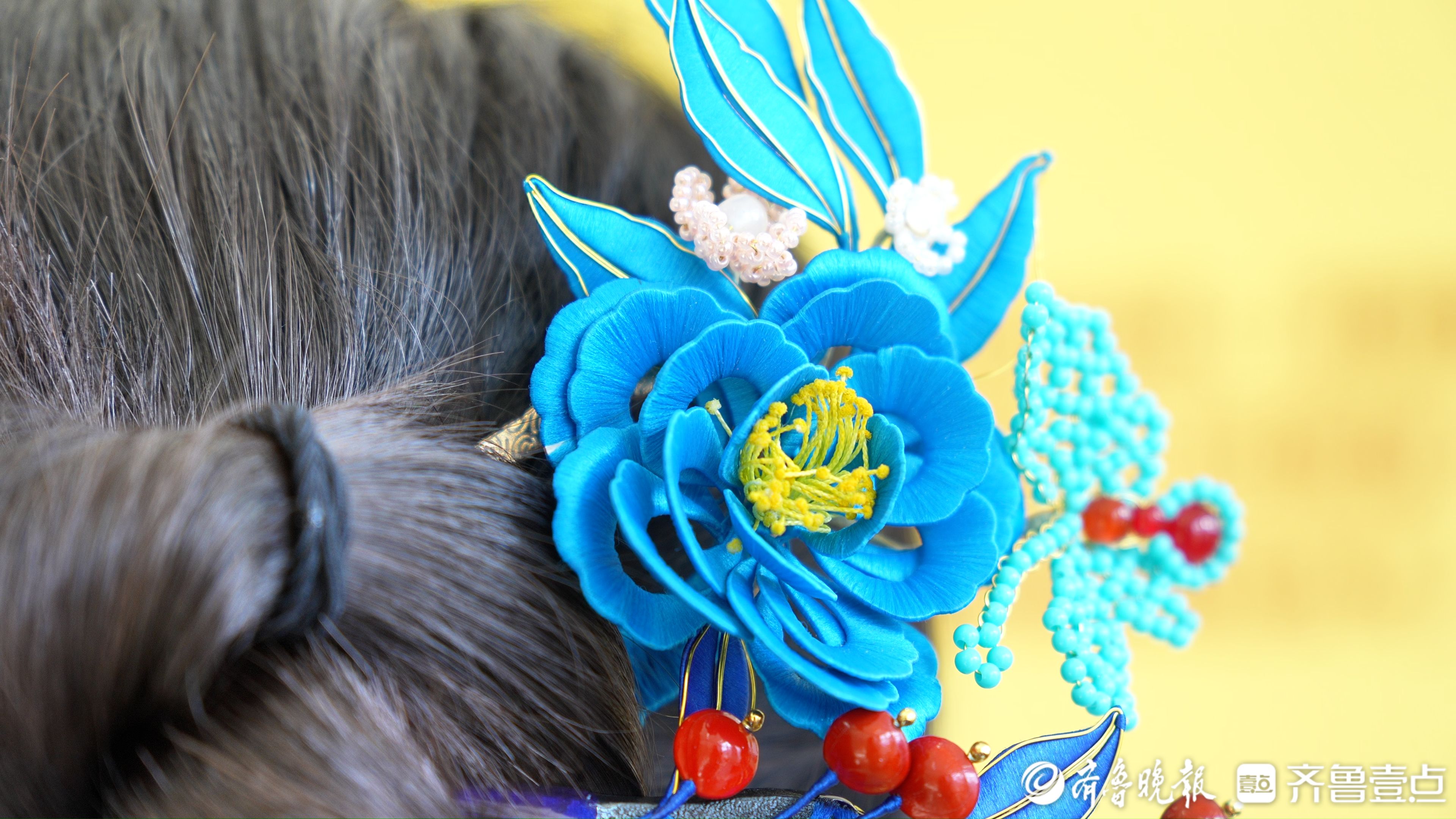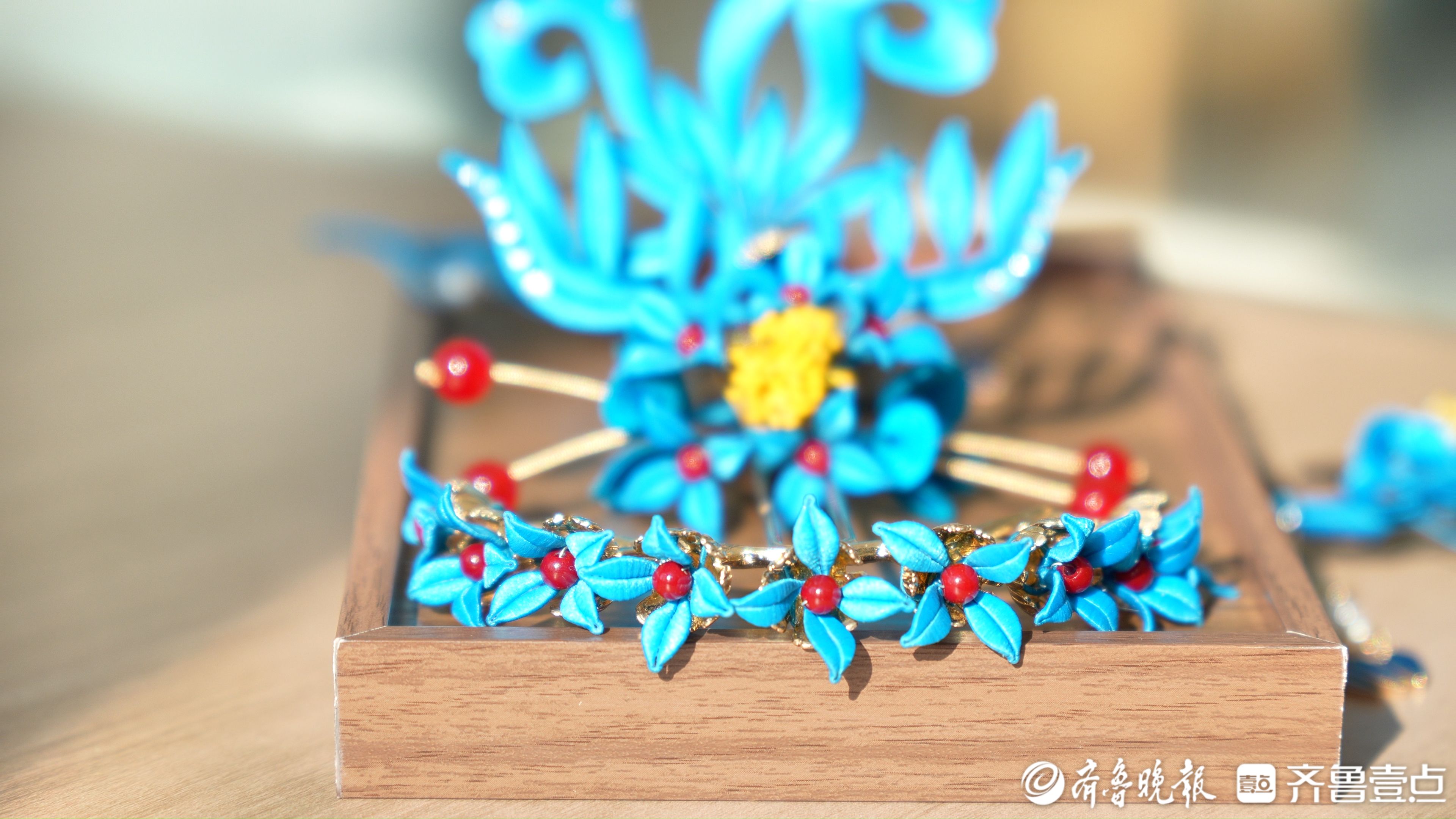 “这组缠花凤凰头饰,有排簪、鬓钗、凤凰钗,我做了三整天。”张家惠轻轻端详着自己的作品。从比例定型、以缠花仿点翠、缀饰珠玉,再到最终组装,每一步都是对耐心与美感的双重考验。丝线绵长,缠绕的不仅是花叶与凤凰,更是跨越时光的技艺与深情;指尖飞舞,编织的不只是一件缠花作品,更是一位年轻传承者对文化的理解与崭新的诠释。