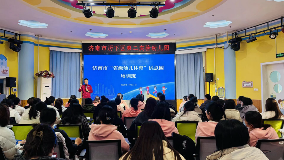 为深入贯彻《3-6岁儿童学习与发展指南》《关于深化体教融合促进青少年健康发展的意见》及山东省幼儿体育试点工作部署,扎实推动体教融合向学前教育延伸,近日,济南市“省级幼儿体育试点”首轮幼儿体育师资专题培训圆满收官。自11月24日至12月5日,全市111所试点幼儿园的园长、骨干教师等600余人次,分批次走进10所重点示范园,完成为期十天的系统化、专业化集中培训。此举标志着济南市幼儿体育工作正式开启以AI技术为支撑、以游戏化教学为路径的智慧育人新阶段,为省级试点工作全面落实落地奠定坚实基础。