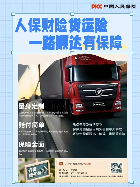 扫码添加济南人保财险千佛山营业部服务经理,或致电0531-67752793,获取专属的货物运输保险方案,让每一次运输都平安抵达,让每一份信任都不负所托!