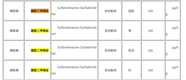 图:据食品中兽药最高残留限量(第13/2013号行政法规),磺胺二甲嘧啶最高残留量规定为100μg/kg