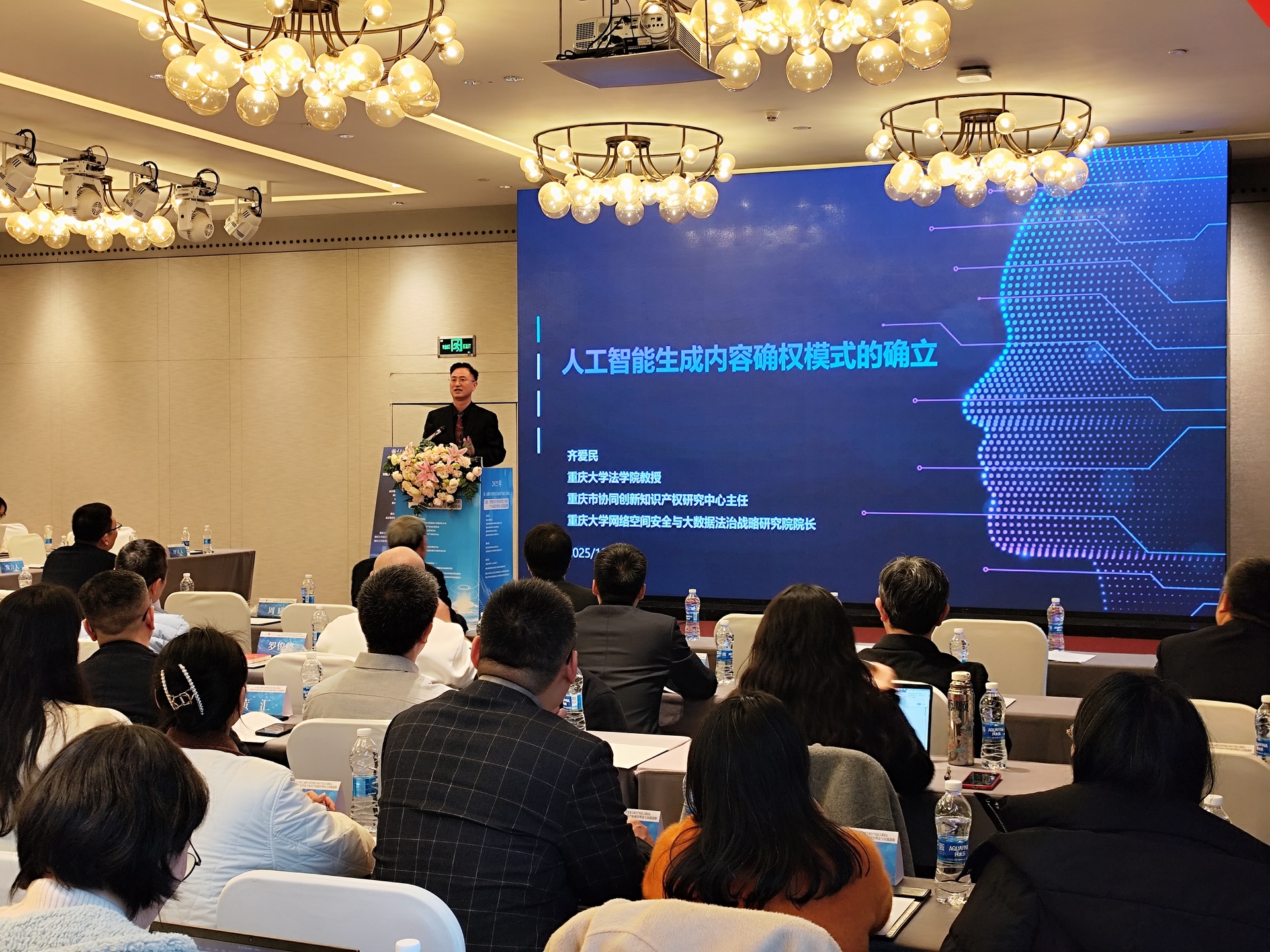 第1眼TV-华龙网讯(记者 秦思思)生成式人工智能的迅猛发展,正以前所未有的深度和广度冲击着现有知识产权法律体系。AI生成内容是否享有著作权?大模型训练使用数据是否构成侵权?技术革命呼唤怎样的制度创新?12月20日,第三届“数字经济发展与知识产权民主湖论坛”在重庆举行,本届研讨会聚焦“智能技术革命背景下知识产权前沿理论与实践创新”,来自业界的专家学者齐聚山城,围绕智能时代知识产权理论构建、制度完善与产业发展等展开探讨。