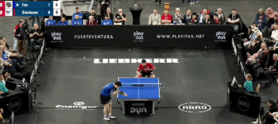 第一盘,樊振东 vs 奥恰洛夫(11-9、11-9、11-8);