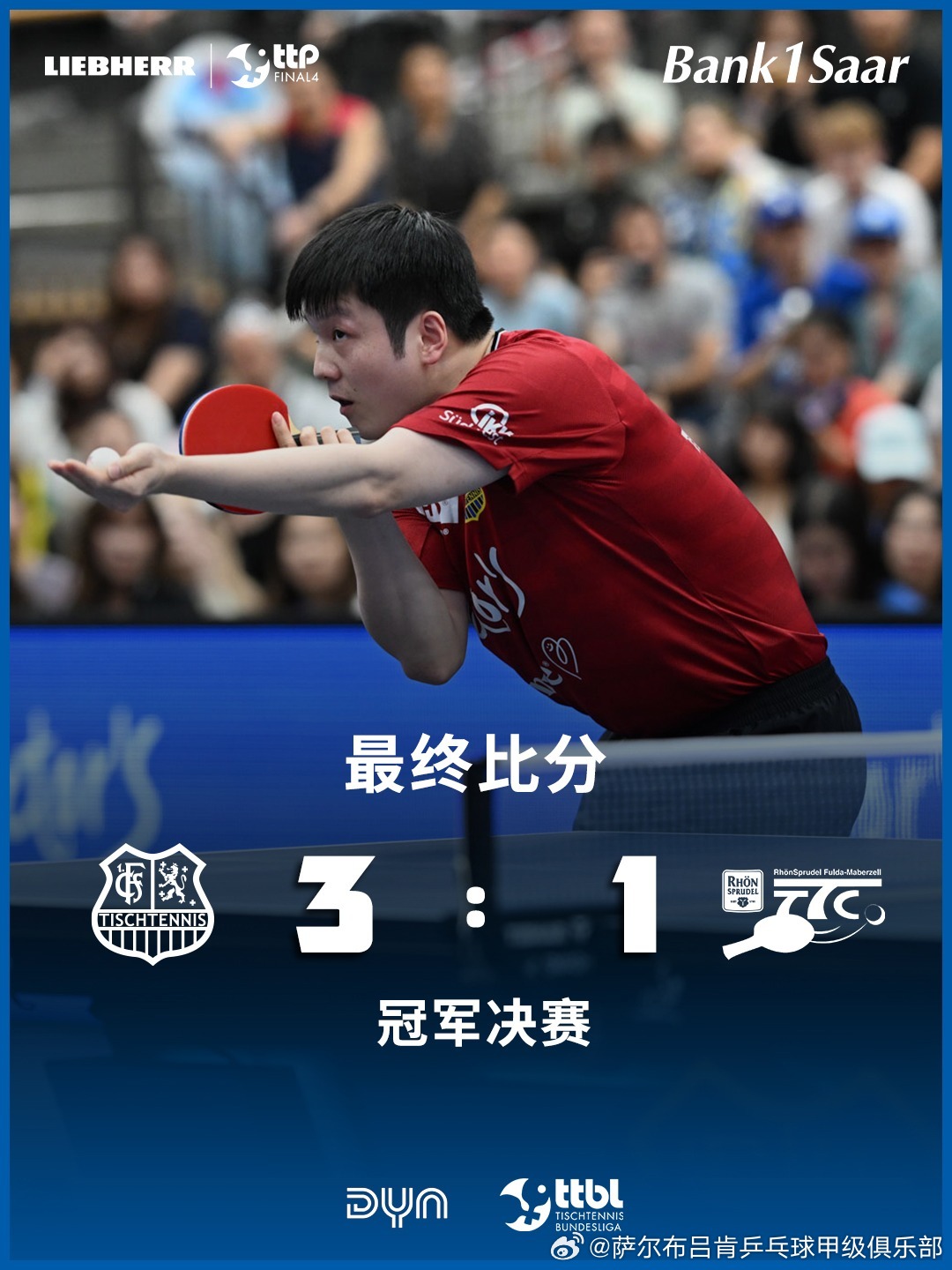 最终萨尔布吕肯俱乐部总比分3-1战胜对手夺得本赛季的德国杯男团冠军。