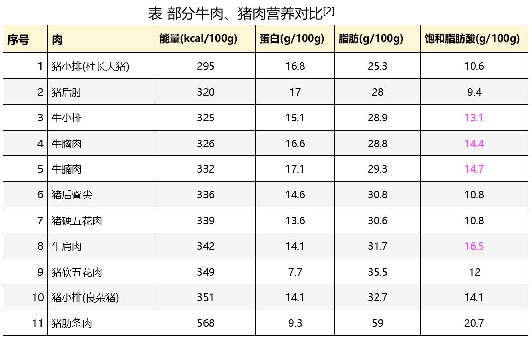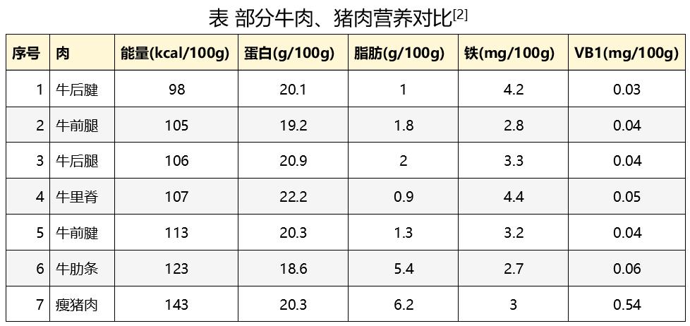 不是牛肉就比猪肉更营养,猪瘦肉在能量、脂肪和蛋白方面都不逊色于牛肉,而且比牛肉还更补维生素B1,而牛肉里也有些肉饱和脂肪酸含量更高,更得控制。
