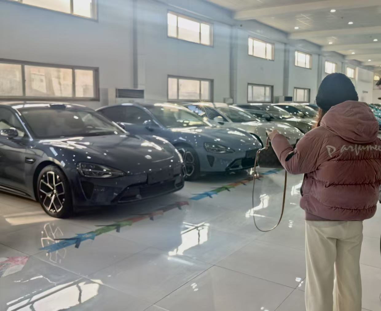 在另一家二手车展厅,停放着十几辆不同版本的小米SU7,店内工作人员介绍,整个2025年,一共进了一百台车,已经卖出去了80多辆,车龄一年内一万公里左右的高配(Max版)大概在20万到21万,标准版大概在十六万。从全年销售情况来讲,“没那么难卖,也不怎么好卖。”