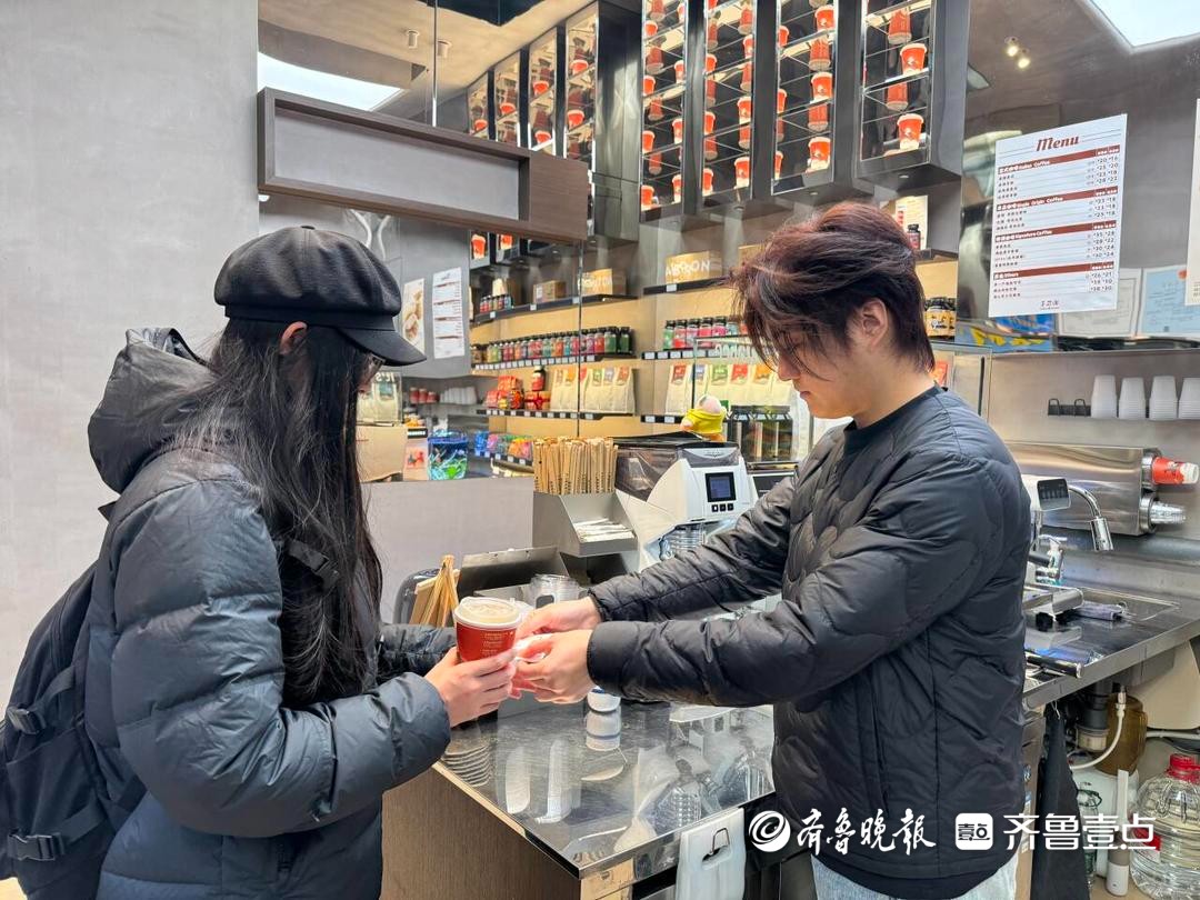 “我经常来团岛农贸市场采购,这家咖啡店一开业我就发现了。”1月23日上午10点,刚买完咖啡的市民曹女士坐在店里,指尖摩挲着温热的拿铁杯,一边小口啜饮,一边品尝着刚才在市场里购买的点心。作为“每天都要咖啡续命”的资深爱好者,曹女士也对咖啡的口感给出了简洁有力的评价:“挺好的!” 这份认可,让她成为店铺的忠实顾客。